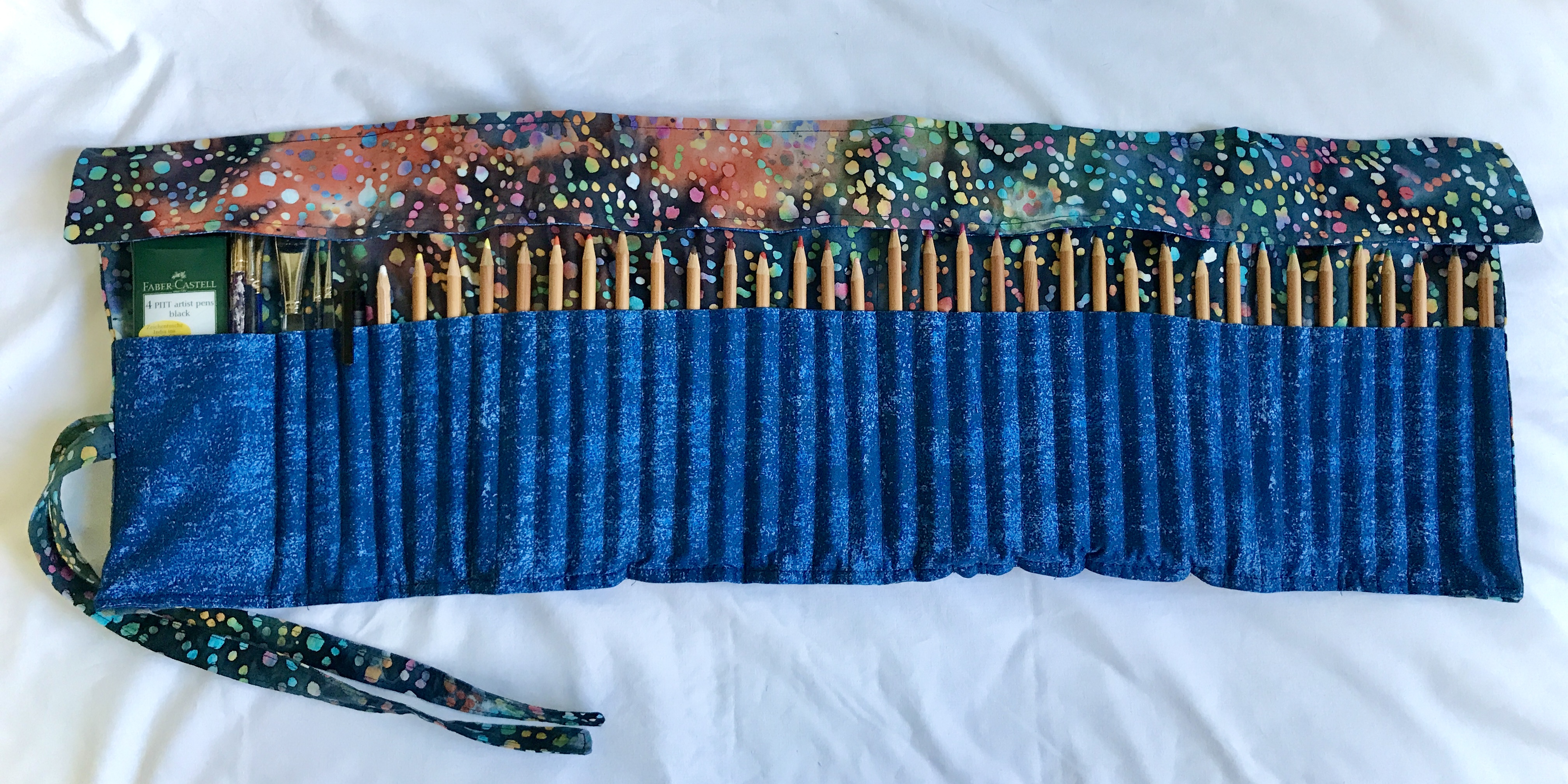 This will be the only roll in this fabric, making this a unique and fun way to keep your drawing utensils!